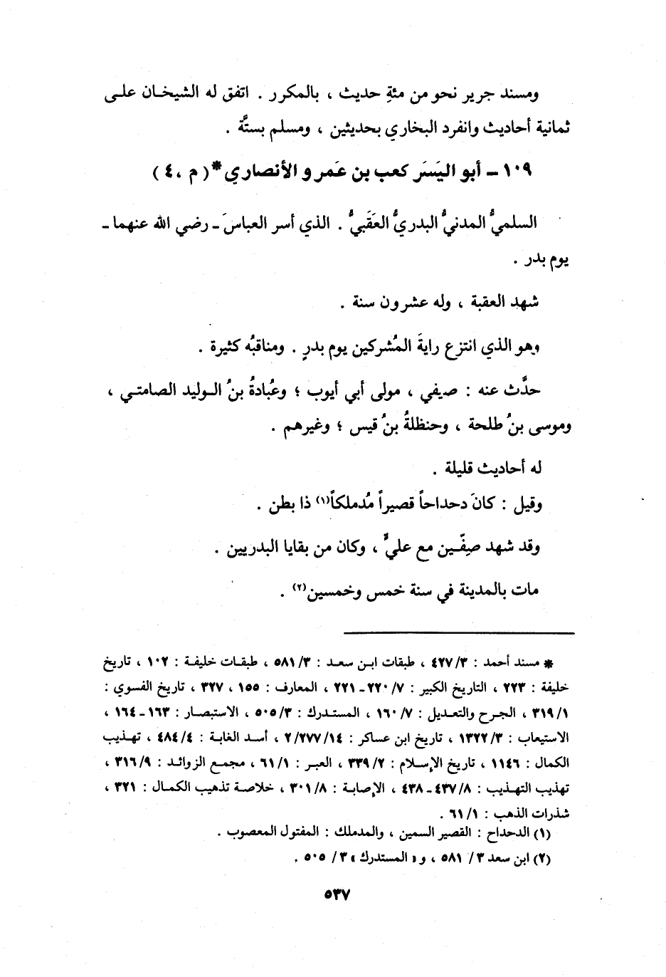 109 - أَبُو اليَسَرِ كَعْبُ بنُ عَمْرٍو الأَنْصَارِيُّ * (م، 4)