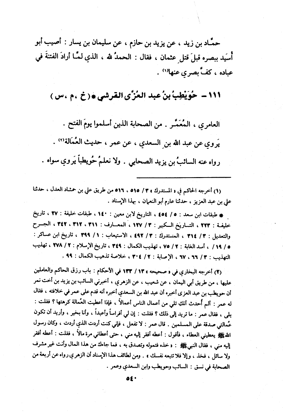 111 - حُوَيْطِبُ بنُ عَبْدِ العُزَّى القُرَشِيُّ العَامِرِيُّ * (خَ، م، س)