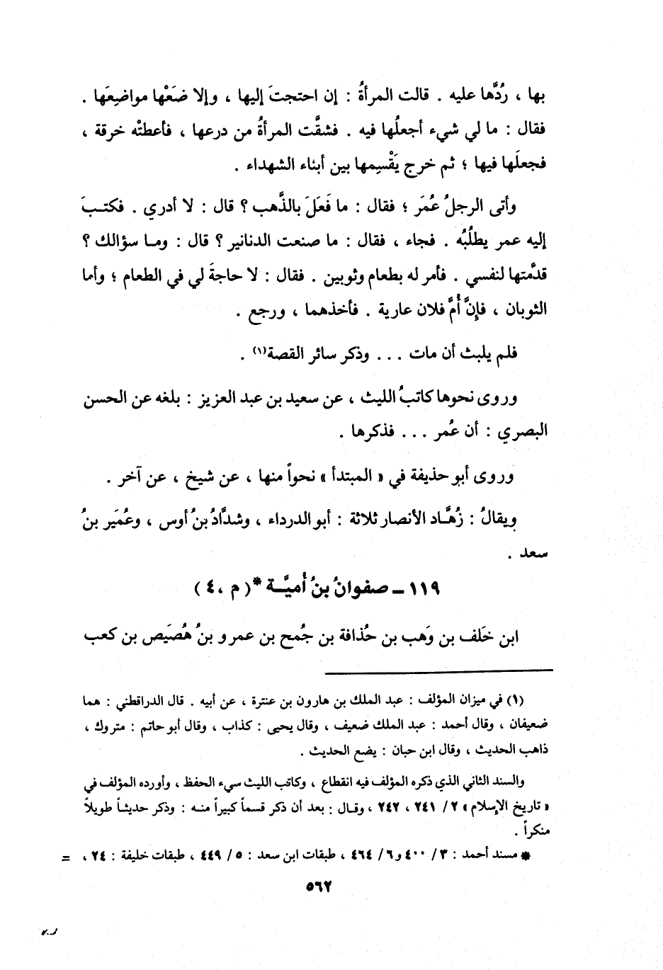 (*) مسند أحمد: 3 / 400 و6 / 464، طبقات ابن سعد: 5 / 449، طبقات خليفة: 24، =