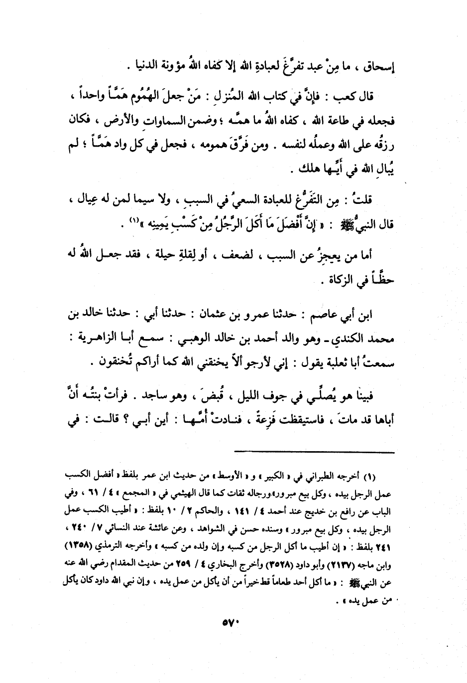 (1) أخرجه الطبراني في " الكبير " و" الأوسط " من حديث ابن عمر بلفظ " أفضل الكسب عمل الرجل بيده، وكل بيع مبرور " ورجاله ثقات كما قال الهيثمي في " المجمع " 4 / 61، وفي الباب عن رافع بن خديج عند أحمد 4 / 141، والحاكم 2 / 10 بلفظ: " أطيب الكسب عمل الرجل بيده، وكل بيع مبرور " وسنده حسن في الشواهد، وعن عائشة عند النسائي 7 / 240، 241 بلفظ: " إن أطيب ما أكل الرجل من كسبه وإن ولده من كسبه " وأخرجه الترمذي (1358) وابن ماجه (2137) وأبو داود (3528) وأخرج البخاري 4 / 259 من حديث المقدام رضي الله عنه عن النبي صلى الله عليه وسلم: " ما أكل أحد طعاما قط خيرا من أن يأكل من عمل يده، وإن نبي الله داود كان يأكل عن عمل يده ".