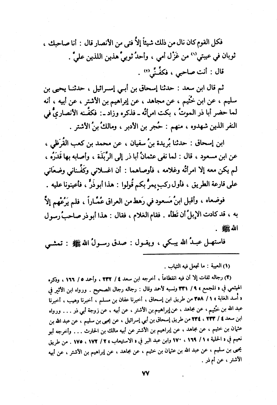 ورواه ابن الأثير في " أسد الغابة " 1 / 358 من طريق ابن إسحاق، أخبرنا عفان بن مسلم، أخبرنا وهيب، أخبرنا عبد الله بن خثيم، عن مجاهد، عن إبراهيم بن الاشتر، عن أبيه، عن زوجة أبي ذر ... ورواه ابن سعد 4 / 233، 234 من طريق إسحاق بن أبي إسرائيل، عن يحيى بن سليم، عن عبد الله بن عثمان بن خثيم عن مجاهد، عن إبراهيم بن الاشتر عن أبيه مالك بن الحارث ... وأخرجه أبو نعيم في " الحلية " 1 / 169، 170 وابن عبد البر في " الاستيعاب " 2 / 172، 175.