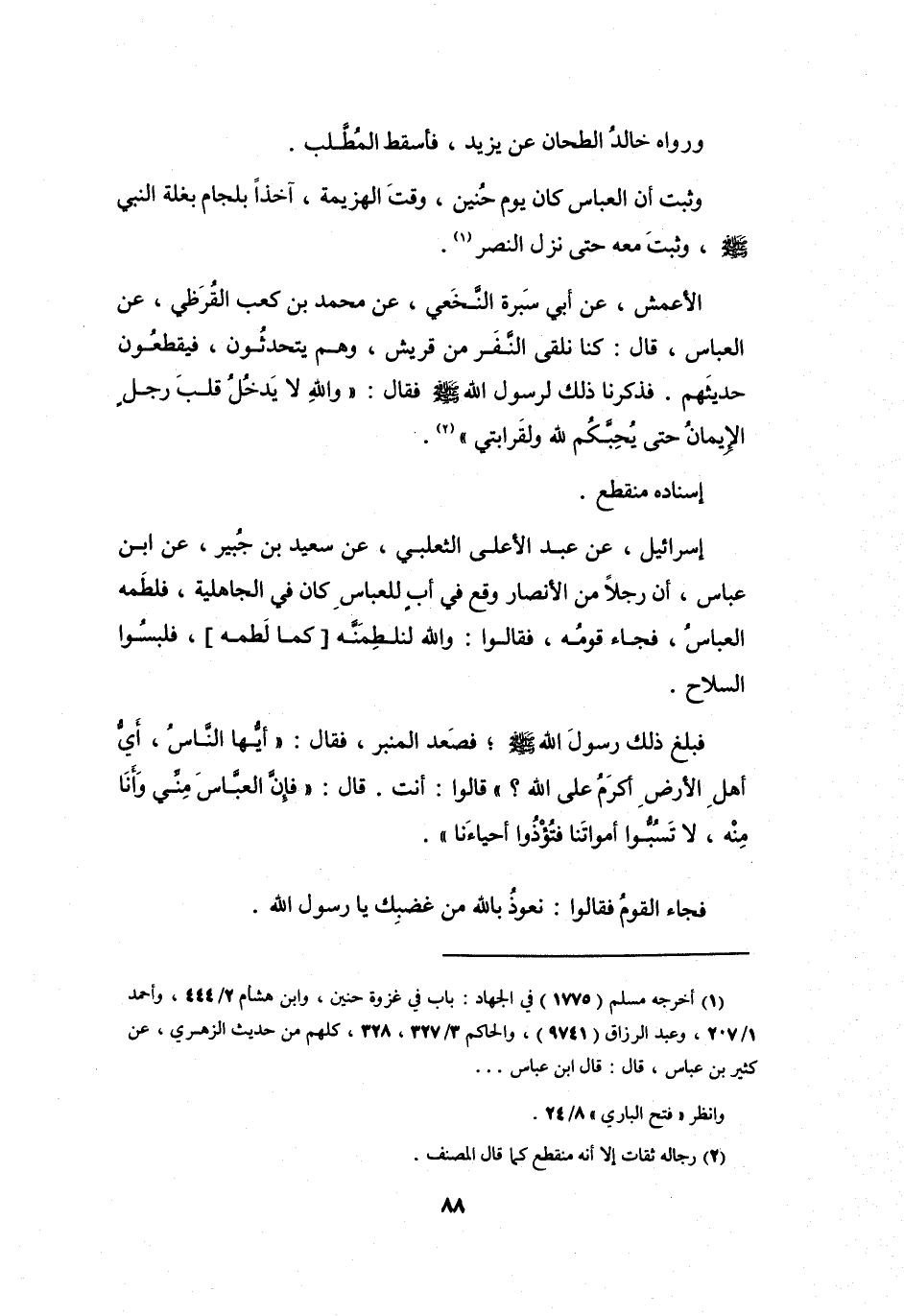 (1) أخرجه مسلم (1775) في الجهاد: باب في غزوة حنين، وابن هشام 2 / 444، وأحمد 1 / 207، وعبد الرزاق (9741) ، والحاكم 3 / 327، 328، كلهم من حديث الزهري، عن كثير بن عباس، قال: قال ابن عباس ... وانظر " فتح الباري " 8 / 24.