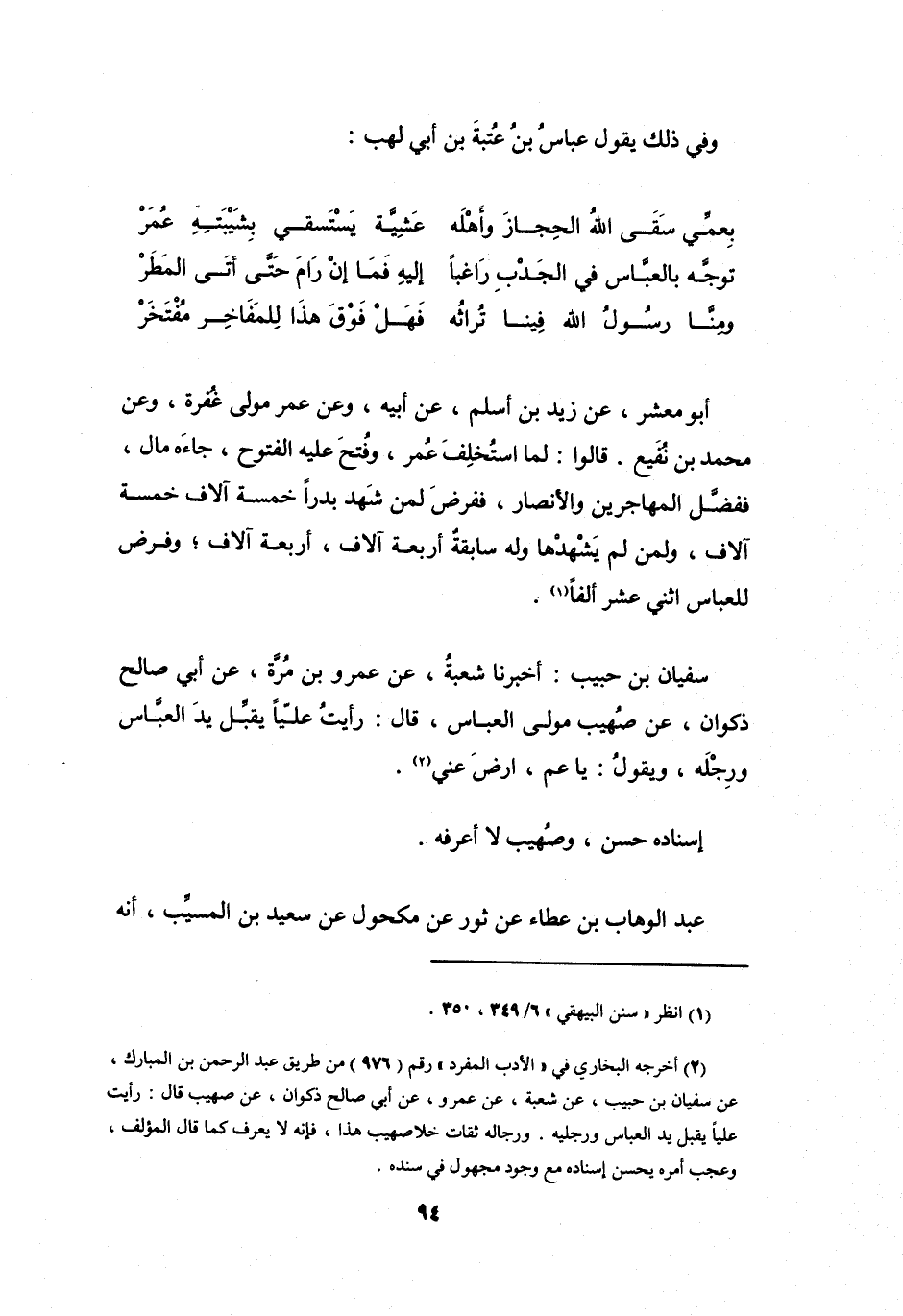 (2) أخرجه البخاري في " الأدب المفرد " رقم (976) من طريق عبد الرحمن بن المبارك، عن سفيان بن حبيب، عن شعبة، عن عمرو، عن أبي صالح ذكوان، عن صهيب قال: رأيت عليا يقبل يد العباس ورجليه.