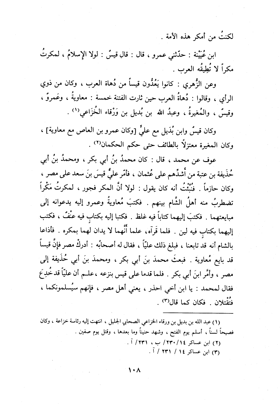 وَقَالُوا: دُهَاةُ العَرَبِ حِيْنَ ثَارَتِ الفِتْنَةُ خَمْسَةٌ: مُعَاوِيَةُ، وَعَمْرٌو، وَقَيْسٌ، وَالمُغِيْرَةُ، وَعَبْدُ اللهِ بنُ بُدَيْلِ بنِ وَرْقَاءَ الخُزَاعِيُّ (1) .