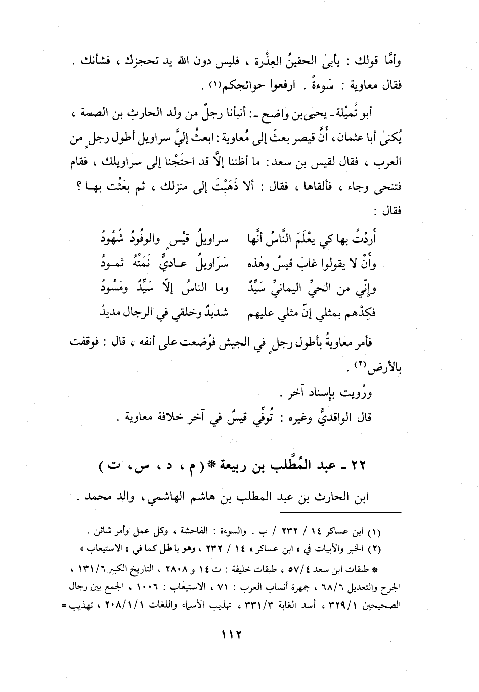 (2) الخبر والابيات في " ابن عساكر " 14 / 232، وهو باطل كما في " الاستيعاب " * طبقات ابن سعد 4 / 57، طبقات خليفة: ت 14 و2808، التاريخ الكبير 6 / 131، الجرح والتعديل 6 / 68، جمهرة أنساب العرب: 71، الاستيعاب: 1006، الجمع بين رجال الصحيحين 1 / 329، أسد الغابة 3 / 331، تهذيب الأسماء واللغات 1 / 1 / 208، تهذيب =