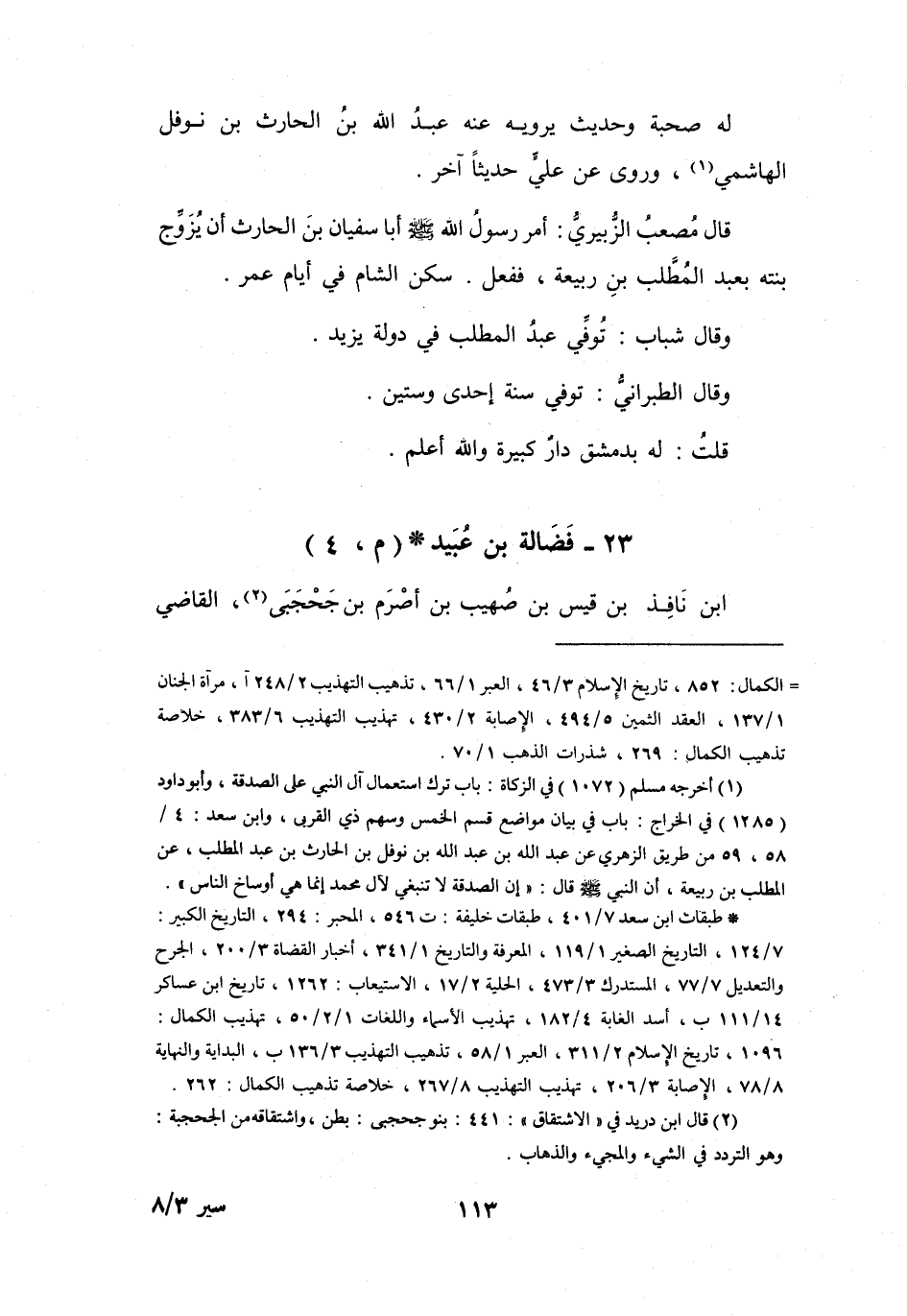(1) أخرجه مسلم (1072) في الزكاة: باب ترك استعمال آل النبي على الصدقة، وأبو داود (1285) في الخراج: باب في بيان مواضع قسم الخمس وسهم ذي القربى، وابن سعد: 4 / 58، 59 من طريق الزهري عن عبد الله بن عبد الله بن نوفل بن الحارث بن عبد المطلب، عن المطلب بن ربيعة، أن النبي صلى الله عليه وسلم قال: " إن الصدقة لا تنبغي لآل محمد إنما هي أوساخ الناس ".