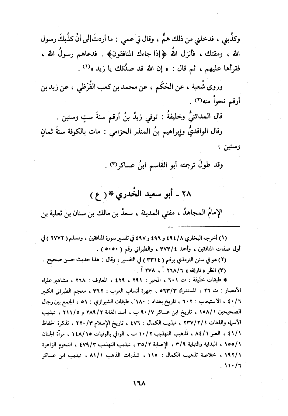 (*) طبقات خليفة: ت 601، المحبر: 291، 429، المعارف: 268، مشاهير علماء الأمصار: ت 26، المستدرك 3 / 563، جمهرة أنساب العرب: 362، معجم الطبراني الكبير 6 / 40، الاستيعاب: 602، تاريخ بغداد: 180، طبقات الشيرازي: 51، الجمع بين رجال الصحيحين 1 / 158، تاريخ ابن عساكر 7 / 90 ب، أسد الغابة 2 / 289 و5 / 211، تهذيب الأسماء واللغات 1 / 2 / 237، تهذيب الكمال: 476، تاريخ الإسلام 3 / 220، تذكرة الحفاظ 1 / 41، العبر 1 / 84، تذهيب التهذيب 2 / 10 ب، الوافي بالوفيات 15 / 148، مرآة الجنان 1 / 155، البداية والنهاية 9 / 3، الإصابة 2 / 35، تهذيب التهذيب 3 / 479، النجوم الزاهرة 1 / 192، خلاصة تذهيب الكمال: 115، شذرات الذهب 1 / 81، تهذيب ابن عساكر 6 / 110.