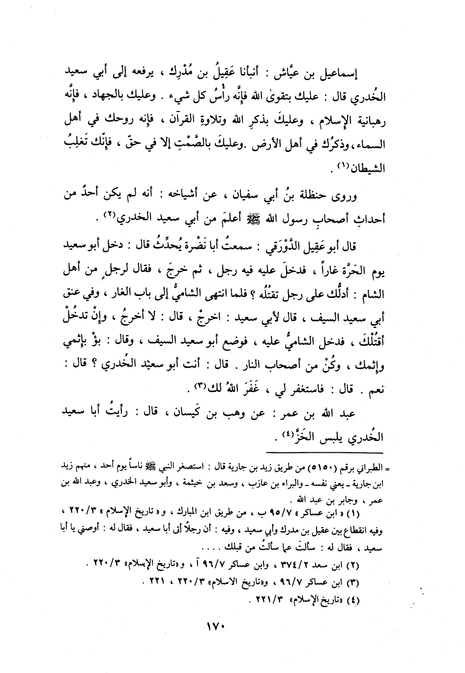 (1) " ابن عساكر " 7 / 95 ب، من طريق ابن المبارك، و" تاريخ الإسلام " 3 / 220، وفيه انقطاع بين عقيل بن مدرك وأبي سعيد، وفيه: أن رجلا أتى أبا سعيد، فقال له: أوصني يا أبا سعيد، فقال له: سألت عما سألت من قبلك ...