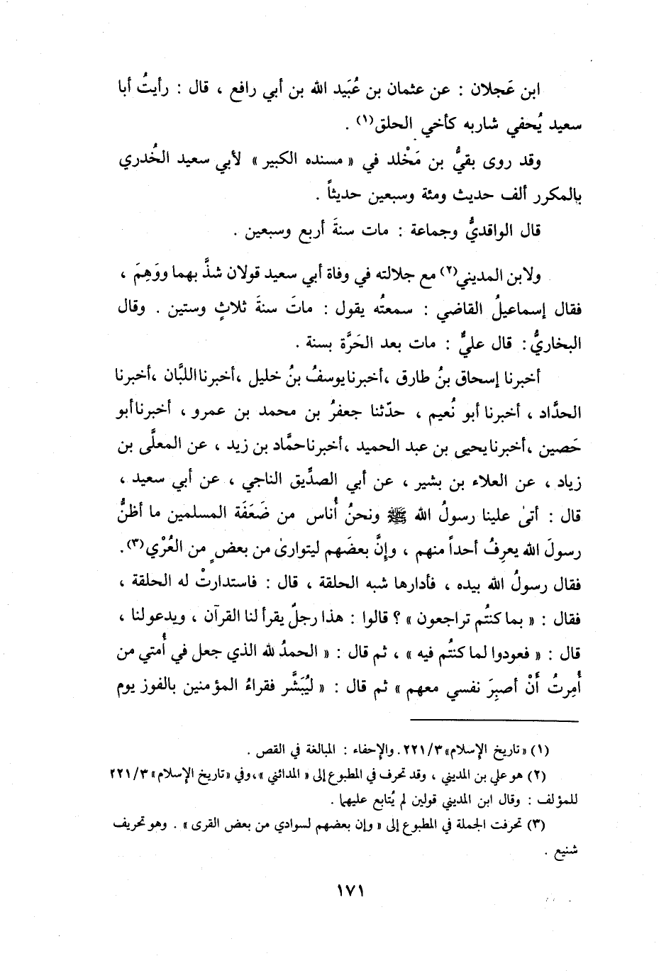 (2) هو علي بن المديني، وقد تحرف في المطبوع إلى " المدائني "، وفي " تاريخ الإسلام " 3 / 221 للمؤلف: وقال ابن المديني قولين لم يتابع عليهما.