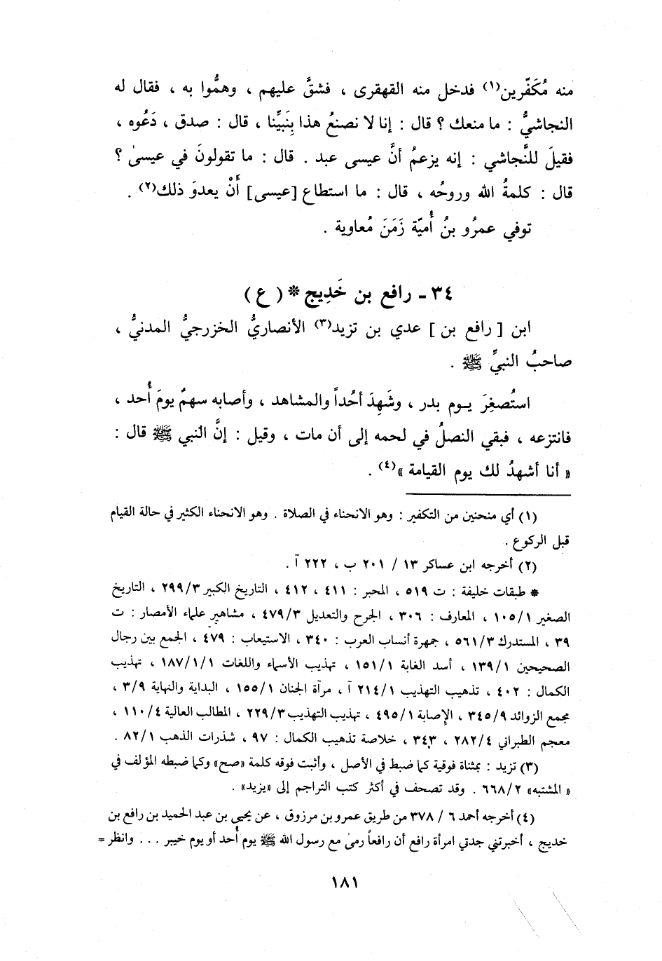 34 - رَافِعُ بنُ خَدِيْجِ بنِ رَافِعِ بنِ عَدِيِّ بنِ تَزِيْدَ الأَنْصَارِيُّ * (3) (ع)