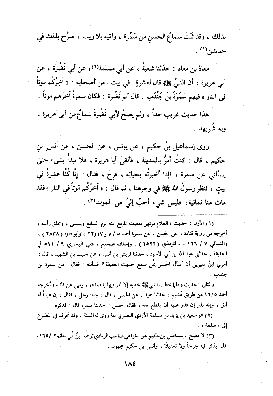 (1) الأول: حديث " الغلام مرتهن بعقيقته تذبح عنه يوم السابع ويسمى، ويحلق رأسه " أخرجه من رواية قتادة، عن الحسن، عن سمرة أحمد 5 / 7 و17 و22، وأبو داود (2838) .