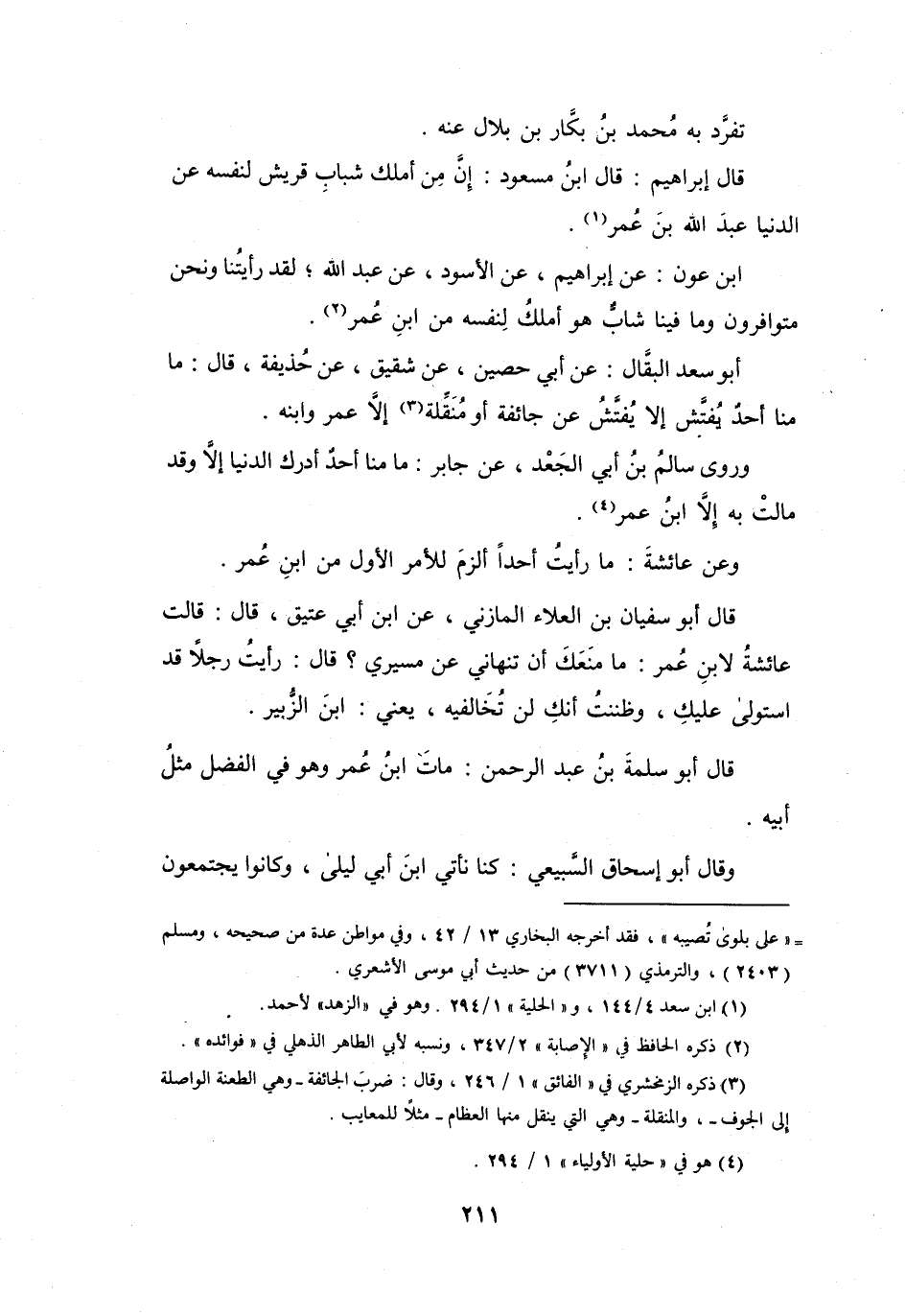 إِنَّ مِنْ أَمْلَكِ شَبَابِ قُرَيْشٍ لِنَفْسهِ عَنِ الدُّنْيَا عَبْدَ اللهِ بنَ عُمَرَ (1) .