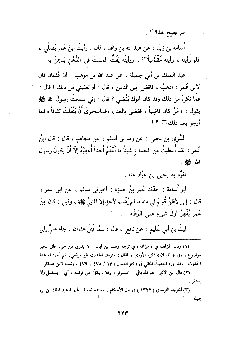 (3) أخرجه الترمذي (1322) في أول الاحكام، وسنده ضعيف لجهالة عبد الملك بن أبي جميلة.