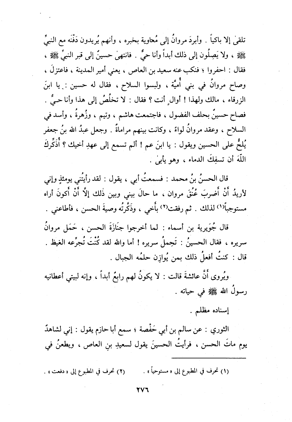 وَجَعلَ عَبْدُ اللهِ بنُ جَعْفَرٍ يُلِحُّ عَلَى الحُسَيْنِ، وَيَقُوْلُ: يَا ابْنَ عَمِّ! أَلَمْ تَسْمَعْ إِلَى عَهدِ أَخِيْكَ؟ أُذَكِّرُكَ اللهَ أَنْ تَسفِكَ الدِّمَاءَ، وَهُوَ يَأبَى.