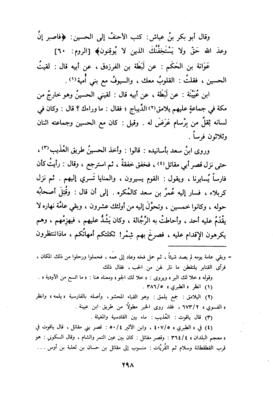 وَقَالَ أَبُو بَكْرٍ بنُ عَيَّاشٍ: كَتَبَ الأَحْنَفُ إِلَى الحُسَيْنِ: {فَاصْبِرْ إِنَّ وَعْدَ اللهِ حَقٌّ، وَلاَ يَسْتَخِفَنَّكَ الَّذِيْنَ لاَ يُوْقِنُوْنَ} [الرُّوْمُ: 60] .