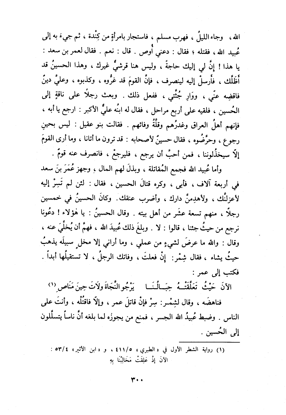 فَانْصَرَفَ عَنْهُ قَوْمٌ، وَأَمَّا عُبَيْدُ اللهِ فَجَمعَ المُقَاتِلَةَ، وَبَذَلَ لَهُمُ المَالَ، وَجَهَّزَ عُمَرَ بنَ سَعْدٍ فِي أَرْبَعَةِ آلاَفٍ، فَأَبَى، وَكَرِهَ قِتَالَ الحُسَيْنِ، فَقَالَ: لَئِنْ لَمْ تَسِرْ إِلَيْهِ لأَعْزِلَنَّكَ، وَلأَهْدِمَنَّ دَارَكَ، وَأَضْرِبَ عُنُقَكَ.