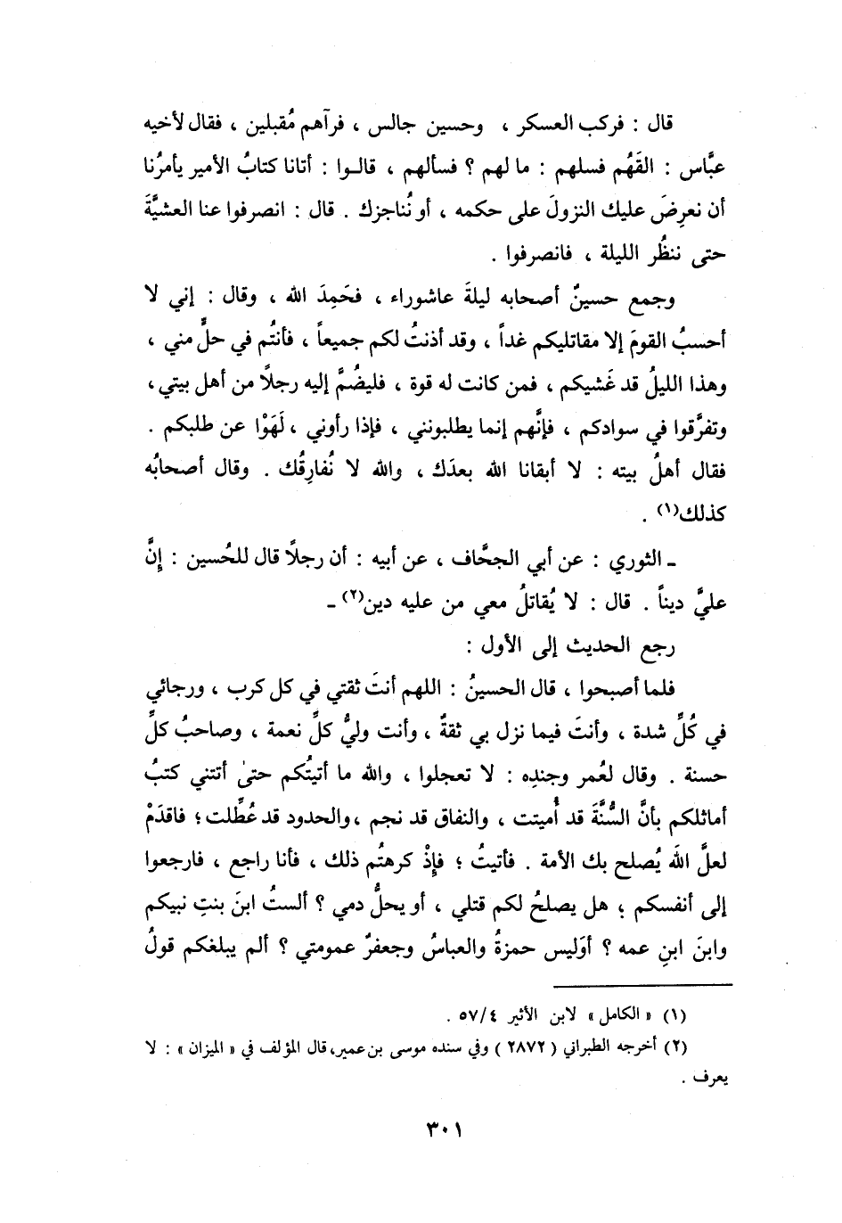 قَالَ: فَرَكِبَ العَسْكَرُ، وَحُسَيْنٌ جَالِسٌ، فَرَآهُم مُقَبِلِيْنَ، فَقَالَ لأَخِيْهِ عَبَّاسٍ: الْقَهُم فَسَلْهُم: مَا لَهُم؟