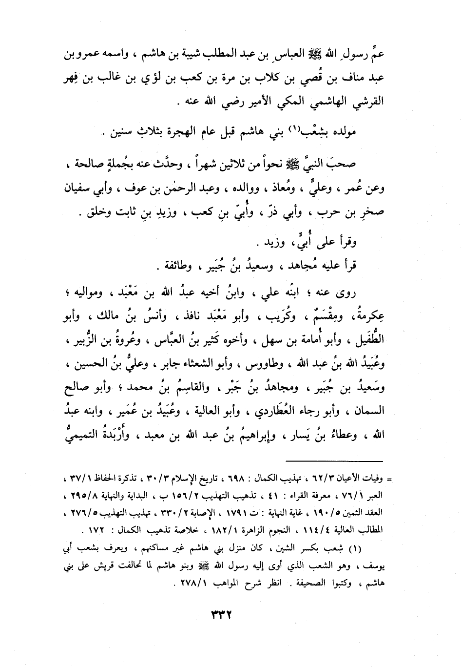 مَوْلِدُهُ: بِشِعْبِ (1) بَنِي هَاشِمٍ، قَبْلَ عَامِ الهِجْرَةِ بِثَلاَثِ سِنِيْنَ.