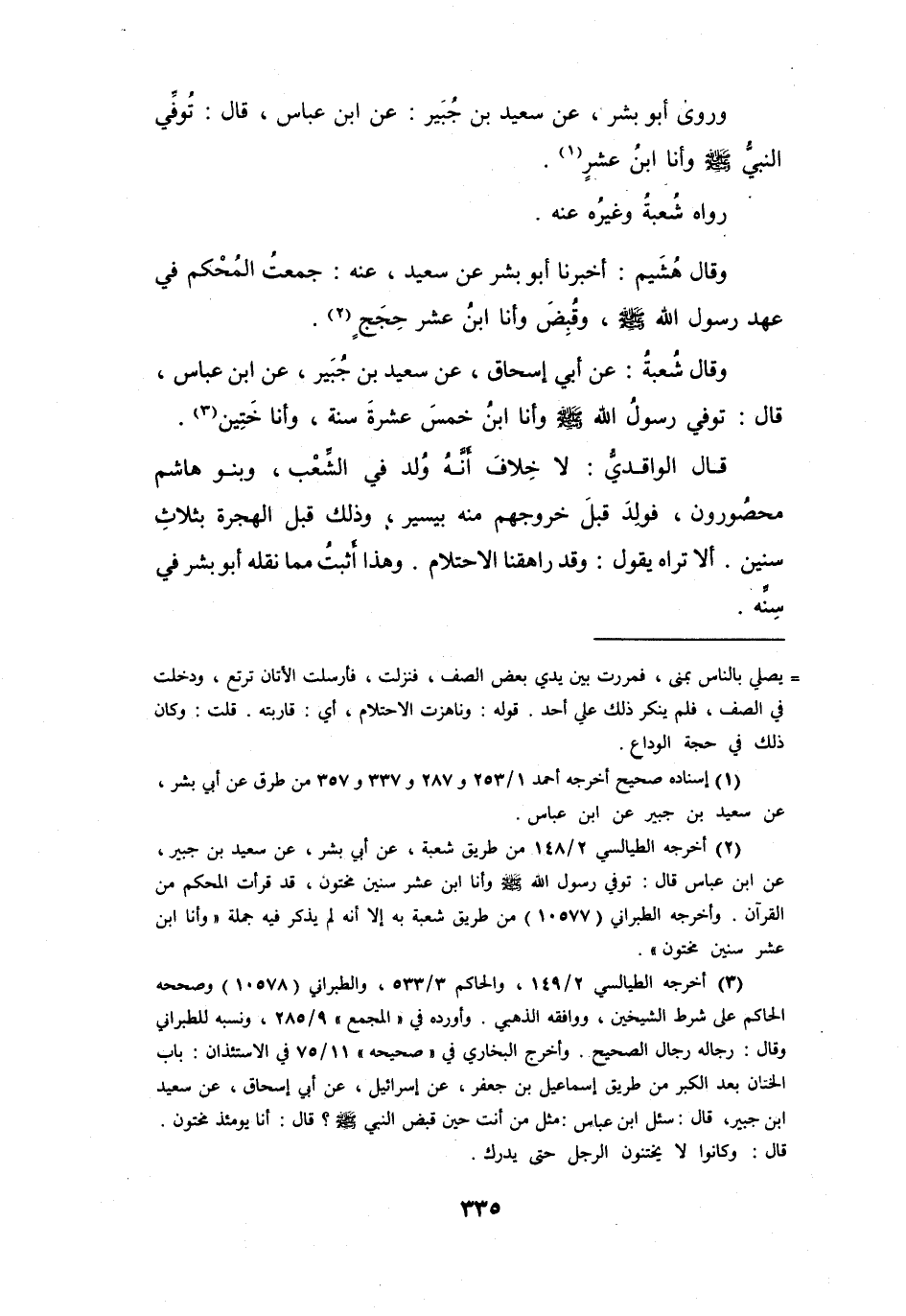 (2) أخرجه الطيالسي 2 / 148 من طريق شعبة، عن أبي بشر، عن سعيد بن جبير، عن ابن عباس قال: توفي رسول الله صلى الله عليه وسلم وأنا ابن عشر سنين مختون، قد قرأت المحكم من القرآن.