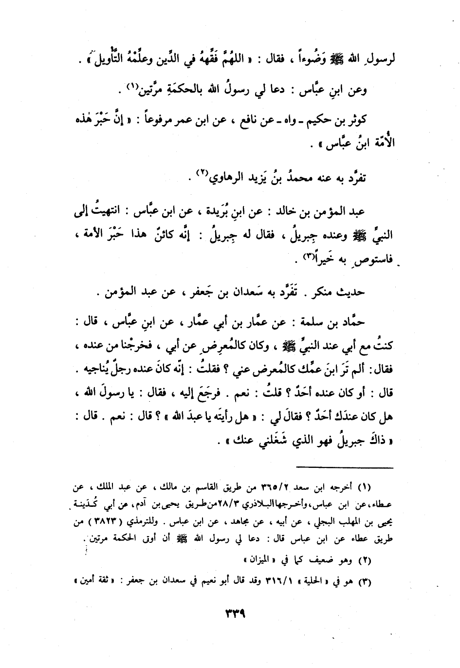 وَعَنِ ابْنِ عَبَّاسٍ: دَعَا لِي رَسُوْلُ اللهِ بِالحِكْمَةِ مَرَّتينِ (1) .
