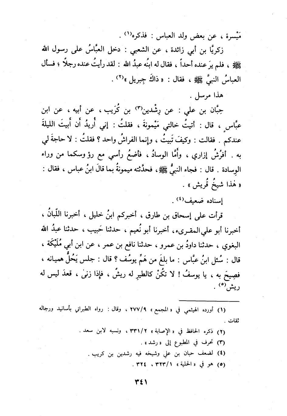 مَيْسَرَةَ، عَنْ بَعْضِ وَلَدِ العَبَّاسِ ... ، فَذَكَرَهُ (1) .