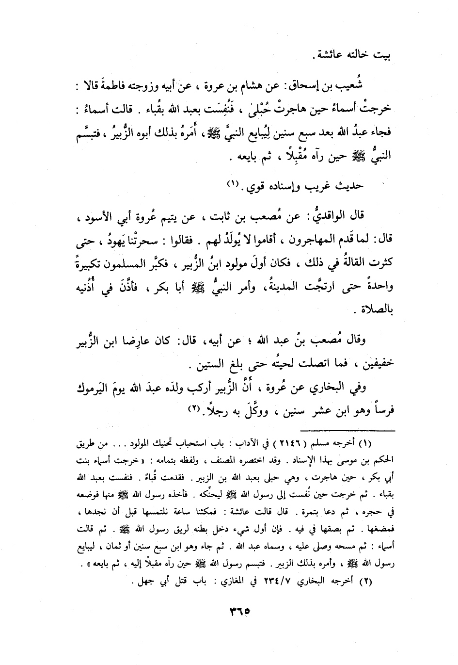 وقد اختصره المصنف، ولفظه بتمامه: " خرجت أسماء بنت أبي بكر، حين هاجرت، وهي حبلى بعبد الله بن الزبير.