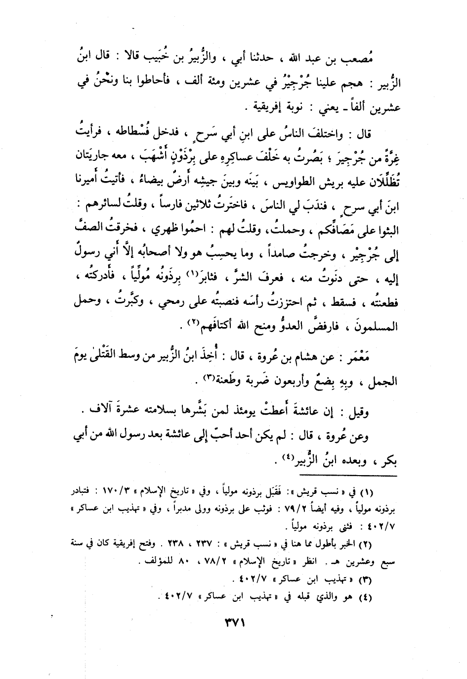 قَالَ ابْنُ الزُّبَيْرِ: هَجَمَ عَلَيْنَا جُرْجِيْرُ فِي عِشْرِيْنَ وَمائَةٍ أَلْفٍ، فَأَحَاطُوا بِنَا وَنَحْنُ فِي عِشْرِيْنَ أَلْفاً -يَعْنِي: نَوْبَةَ إِفْرِيْقِيَةَ -.