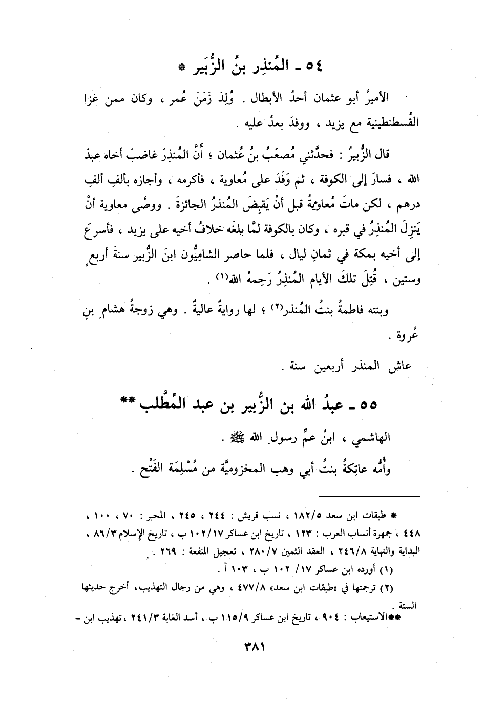 54 - المُنْذِرُ بنُ الزُّبَيْرِ الأَسَدِيُّ أَبُو عُثْمَانَ *