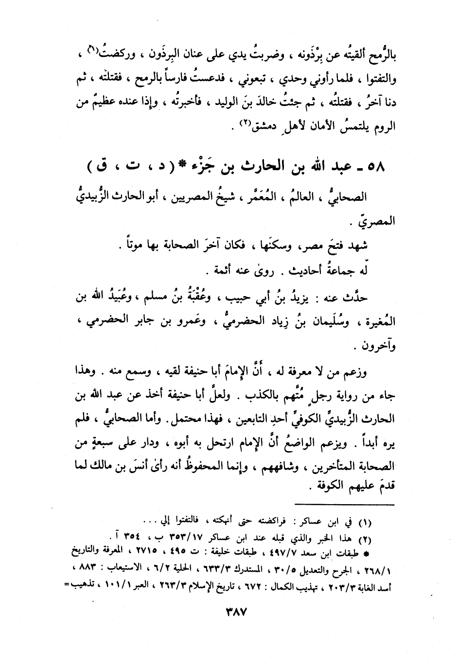 58 - عَبْدُ اللهِ بنُ الحَارِثِ بنِ جَزْءٍ الزُّبَيْدِيُّ * (د، ت، ق)