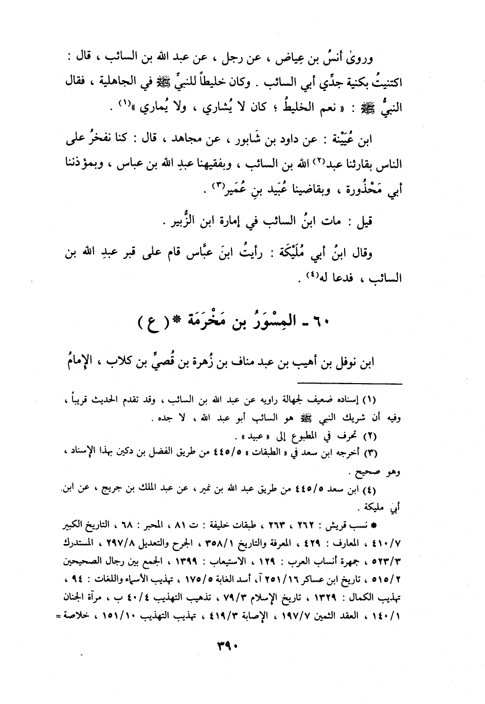 60 - المِسْوَرُ بنُ مَخْرَمَةَ بنِ نَوْفَلِ بنِ أُهَيْبٍ الزُّهْرِيُّ * (ع)