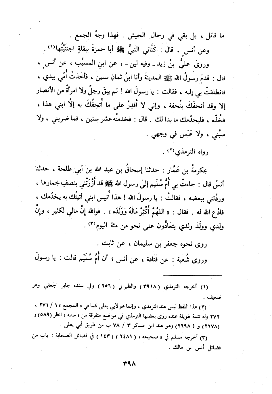 (3) أخرجه مسلم في " صحيحه " (2481) (143) في فضائل الصحابة: باب من فضائل أنس بن مالك.