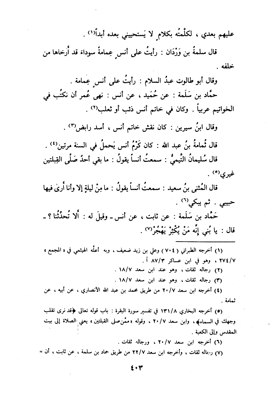 (7) رجاله ثقات، وأخرجه ابن سعد 7 / 22 من طريق حماد بن سلمة، عن ثابت، إن =