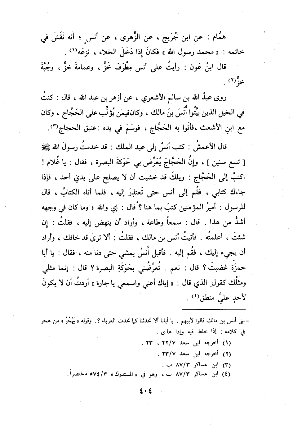 قَالَ ابْنُ عَوْنٍ: رَأَيْتُ عَلَى أَنَسٍ مِطْرَفَ خَزٍّ، وَعِمَامَةَ خَزٍّ، وَجُبَّةَ خَزٍّ (2) .