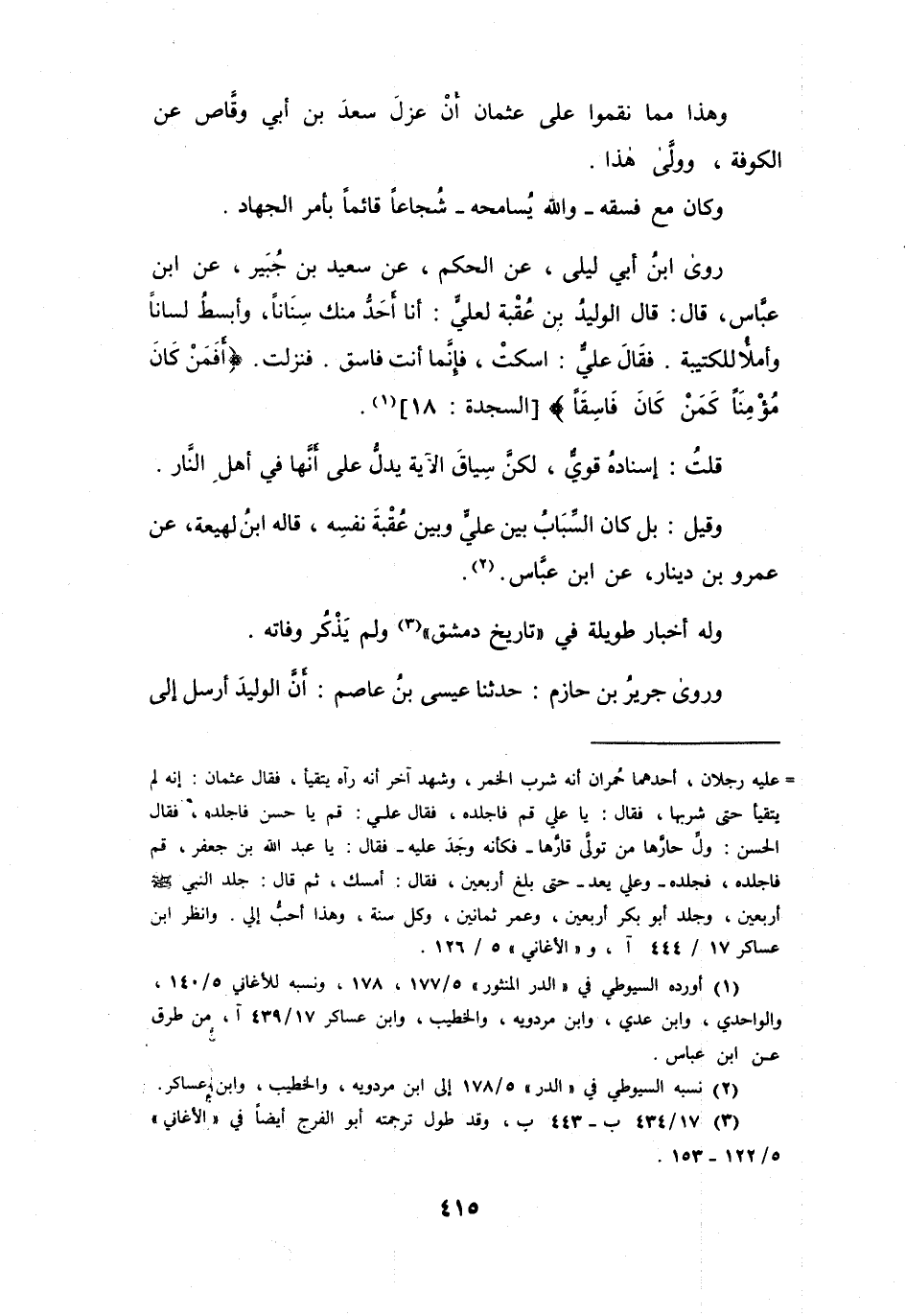 وَهَذَا مِمَّا نَقَمُوا عَلَى عُثْمَانَ أَنْ عَزَلَ سَعْدَ بنَ أَبِي وَقَّاصٍ عَنِ الكُوْفَةِ، وَوَلَّى هَذَا.