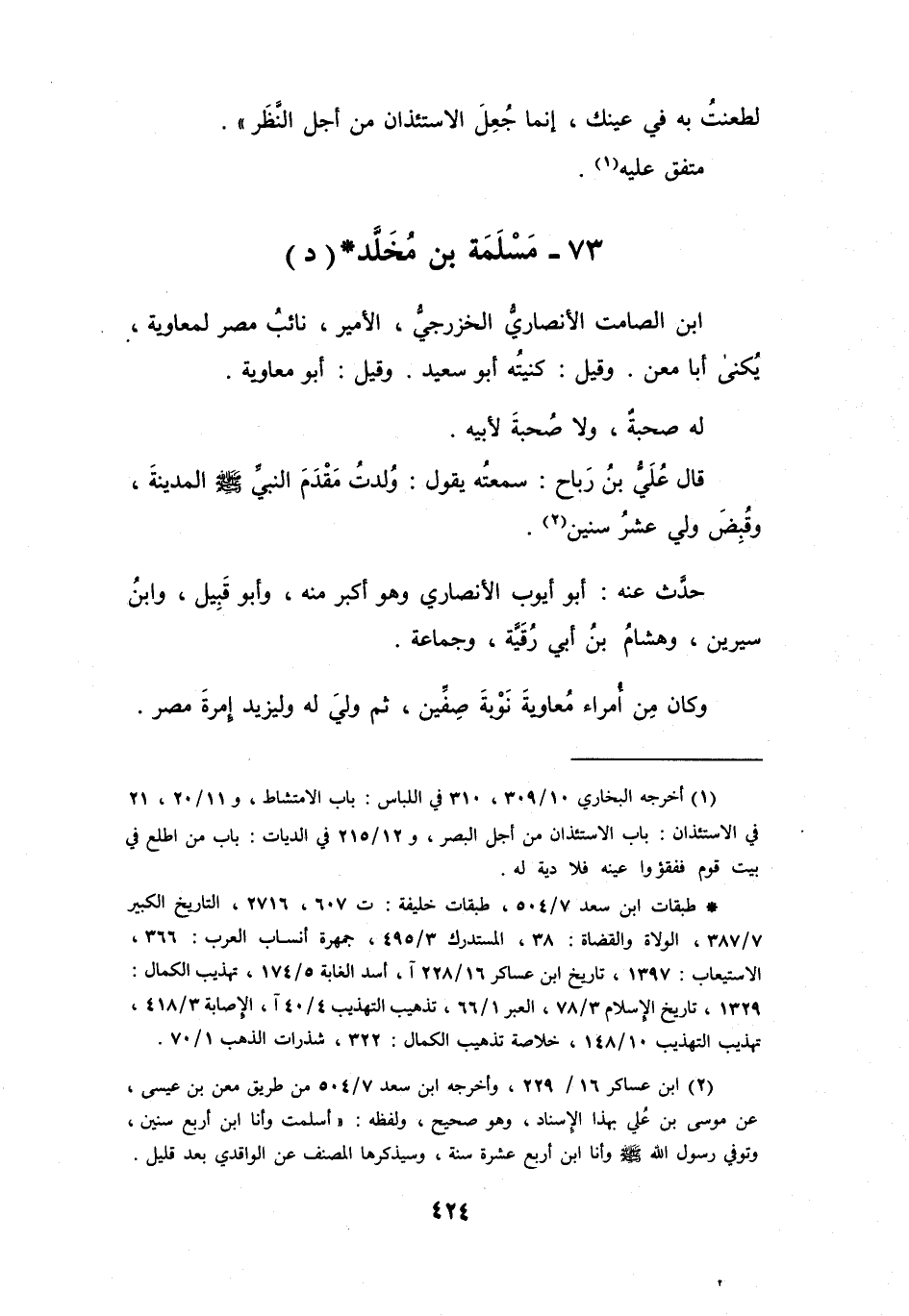 73 - مَسْلَمَةُ بنُ مُخَلَّدِ بنِ الصَّامِتِ الأَنْصَارِيُّ * (د)