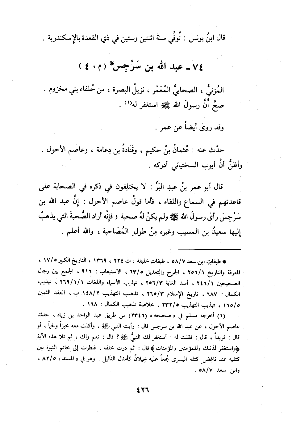 74 - عَبْدُ اللهِ بنُ سَرْجِسَ المُزَنِيُّ * (م، 4)