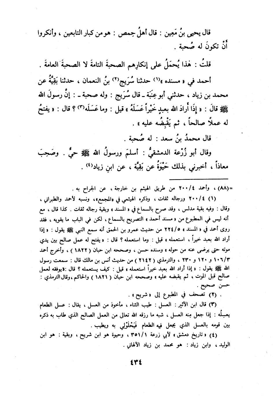 (4) " تاريخ دمشق " لأبي زرعة 1 / 351، وحيوة هو ابن شريح، وبقية: هو ابن الوليد، وابن زياد: هو محمد بن زياد الالهاني.