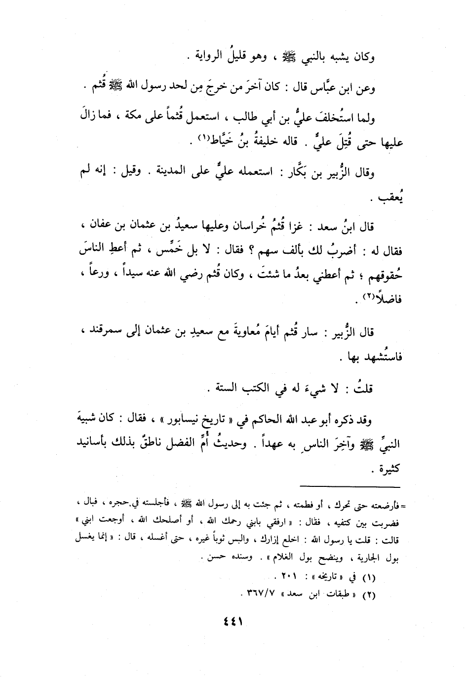 (2) " طبقات ابن سعد " 7 / 367.