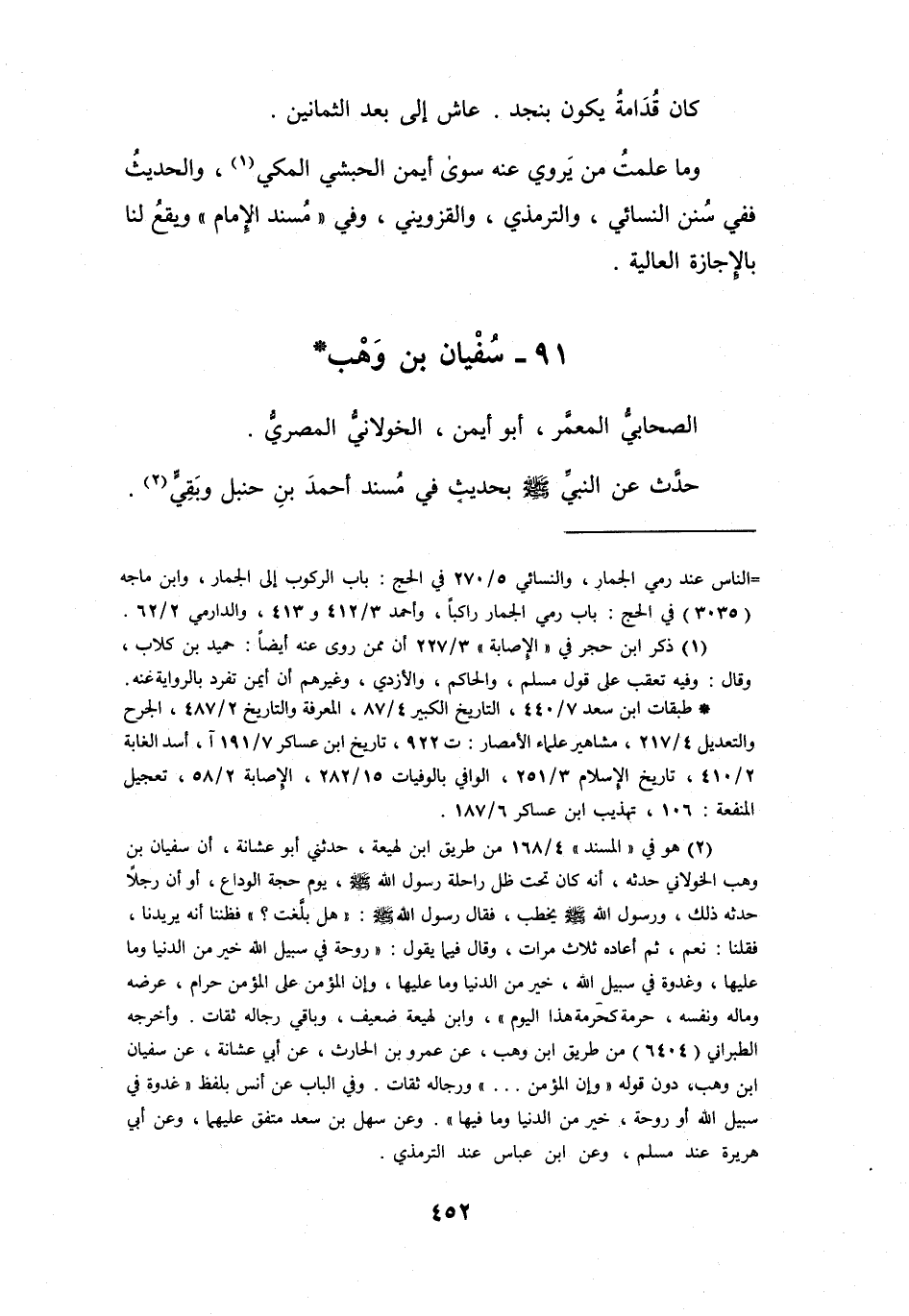 91 - سُفْيَانُ بنُ وَهْبٍ الخَوْلاَنِيُّ أَبُو أَيْمَن المِصْرِيُّ *