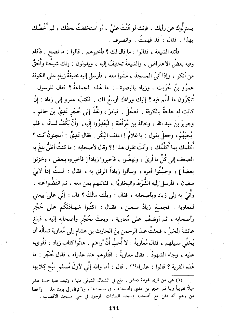 فَجَمَعَ زِيَادٌ سَبْعِيْنَ، فَقَالَ: اكْتُبُوا شَهَادَتَكُم عَلَى حُجْرٍ وَأَصْحَابِهِ.