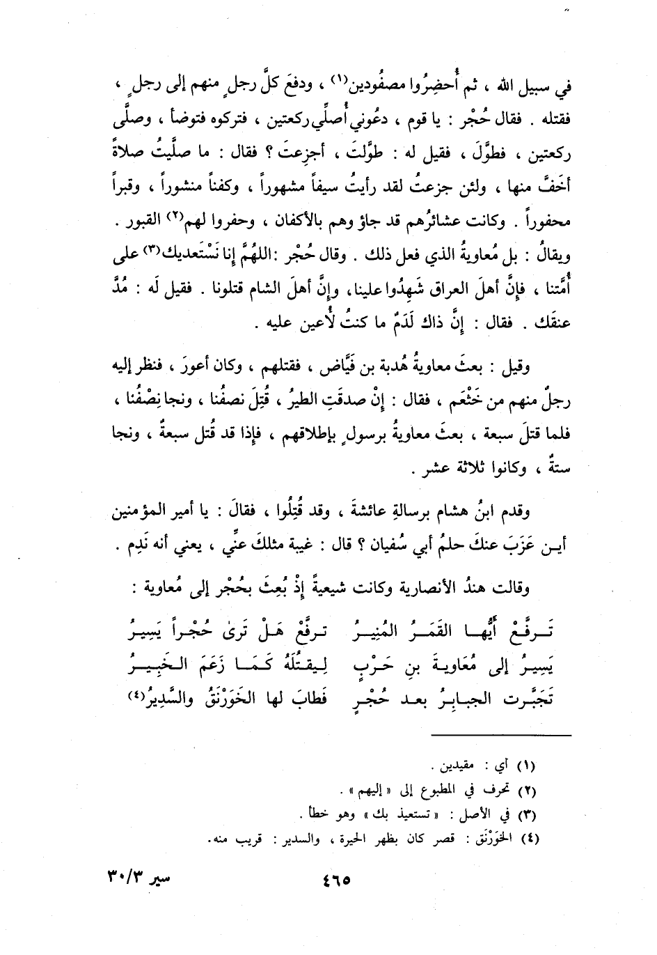 وَقَالَ حُجْرٌ: اللَّهُمَّ إِنَّا نَسْتَعْدِيكَ (3) عَلَى أُمَّتِنَا، فَإِنَّ أَهْلَ العِرَاقِ شَهِدُوا عَلَيْنَا، وَإِنَّ أَهْلَ الشَّامِ قَتَلُوْنَا.