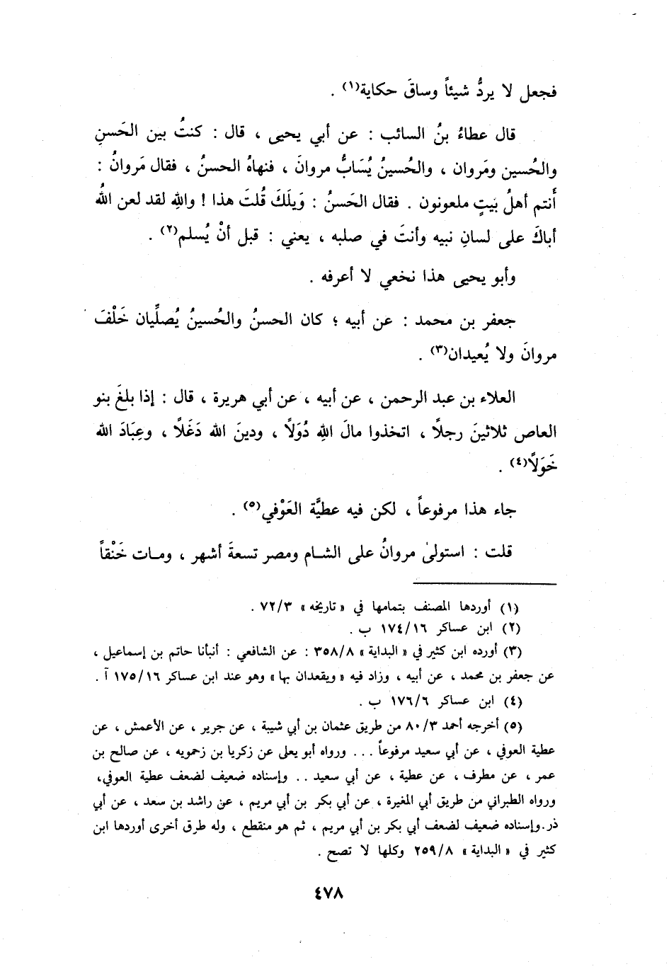 جَعْفَرُ بنُ مُحَمَّدٍ: عَنْ أَبِيْهِ: كَانَ الحَسَنُ وَالحُسَيْنُ يُصَلِّيَانِ خَلْفَ مَرْوَانَ، وَلاَ يُعِيدَانِ (3) .