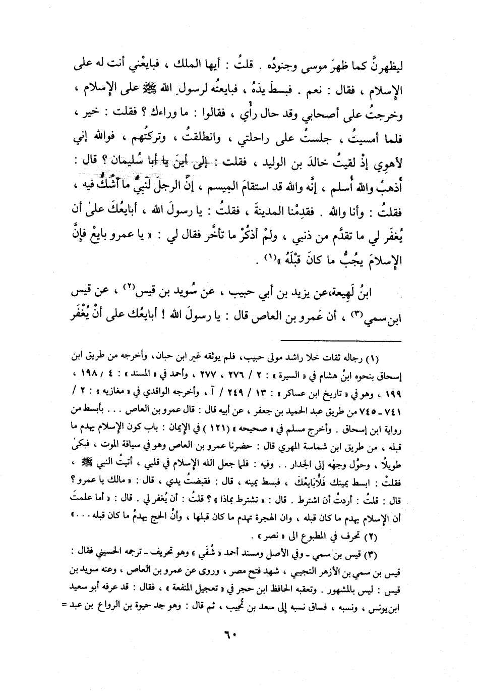 فَقَالَ لِي: (يَا عَمْرُو! بَايِعْ، فَإِنَّ الإِسْلاَمَ يَجُبُّ مَا كَانَ قَبْلَهُ (1)) .