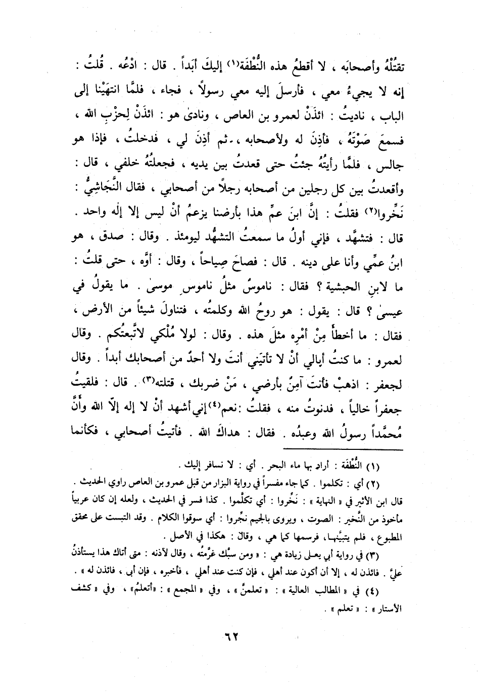 قَالَ: فَلَقِيْتُ جَعْفَراً خَالِياً، فَدَنَوْتُ مِنْهُ، فَقُلْتُ: نَعَمْ (4) ، إِنِّيْ أَشْهَدُ أَنْ لاَ إِلَهَ إِلاَّ اللهَ، وَأَنَّ مُحَمَّداً رَسُوْلُ اللهِ وَعَبْدُهُ.