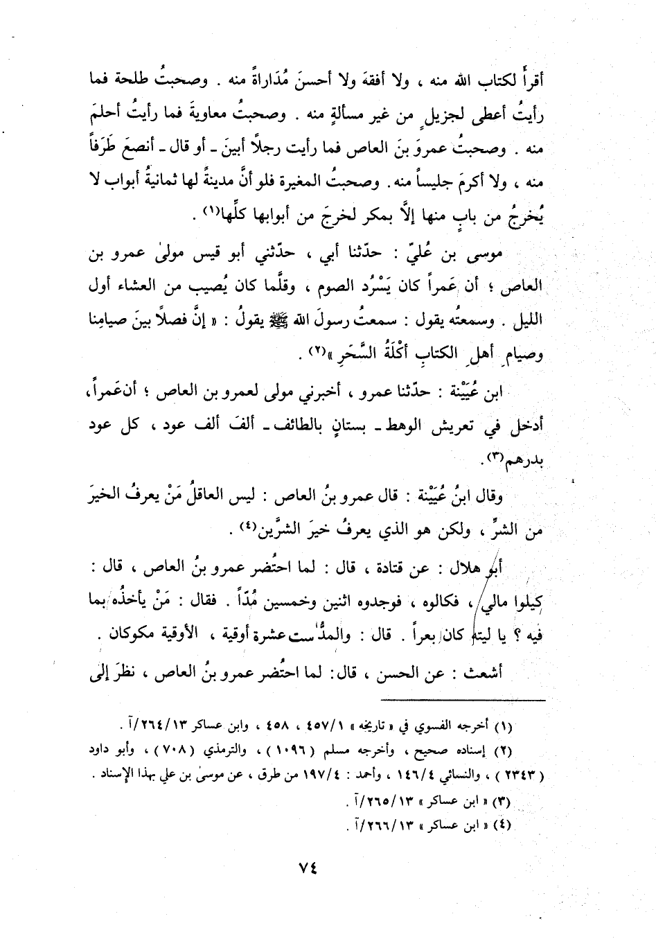 ابْنُ عُيَيْنَةَ: حَدَّثَنَا عَمْرٌو، أَخْبَرَنِي مَوْلَىً لِعَمْرِو بنِ العَاصِ: