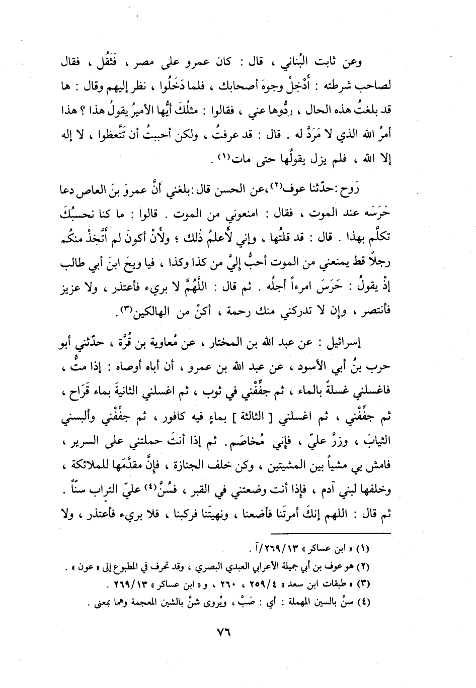 بَلَغَنِي أَنَّ عَمْرَو بنَ العَاصِ دَعَا حَرَسَهُ عِنْدَ المَوْتِ، فَقَالَ: امْنَعُوْنِي مِنَ المَوْتِ.
