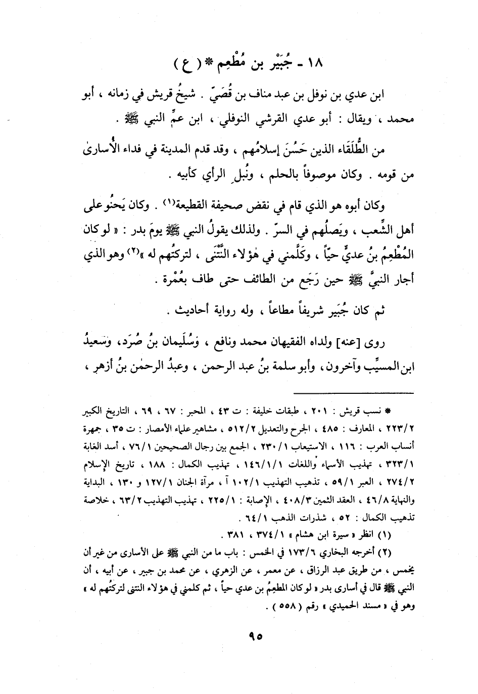 18 - جُبَيْرُ بنُ مُطْعِمِ بنِ عَدِيِّ بنِ نَوْفَلٍ النَّوْفَلِيُّ * (ع)