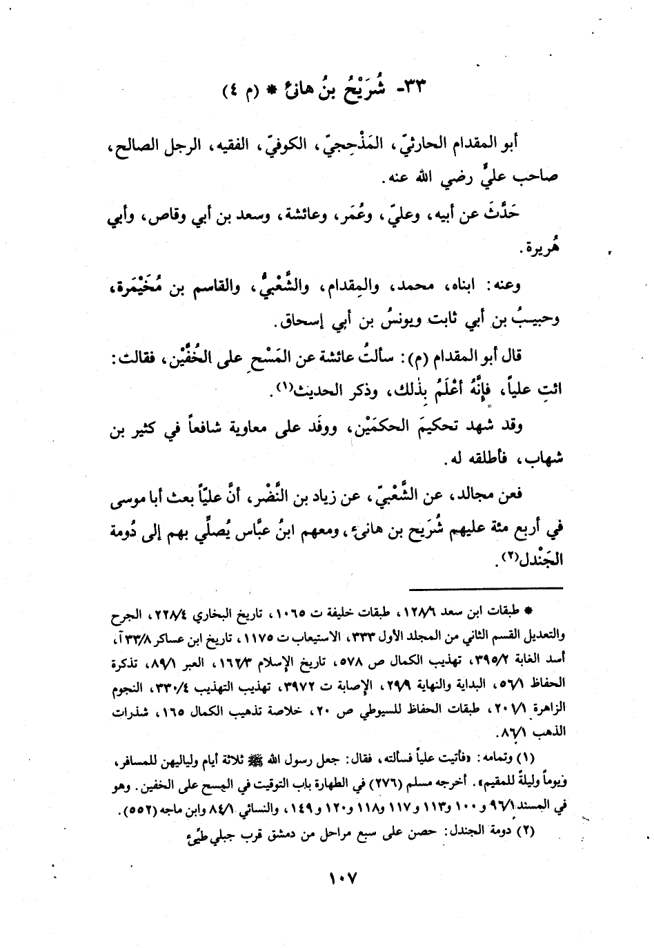 33 - شُرَيْحُ بنُ هَانِىء أَبُو المِقْدَامِ الحَارِثِيُّ * (م، 4)