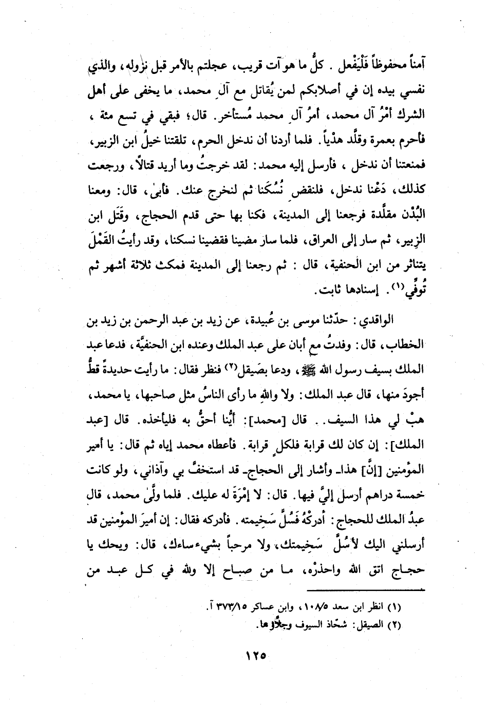 قَالَ عَبْدُ المَلِكِ: وَلاَ وَاللهِ مَا رَأَى النَّاسُ مِثْلَ صَاحِبِهَا! يَا مُحَمَّدُ، هَبْ لِي هَذَا السَّيْفَ.