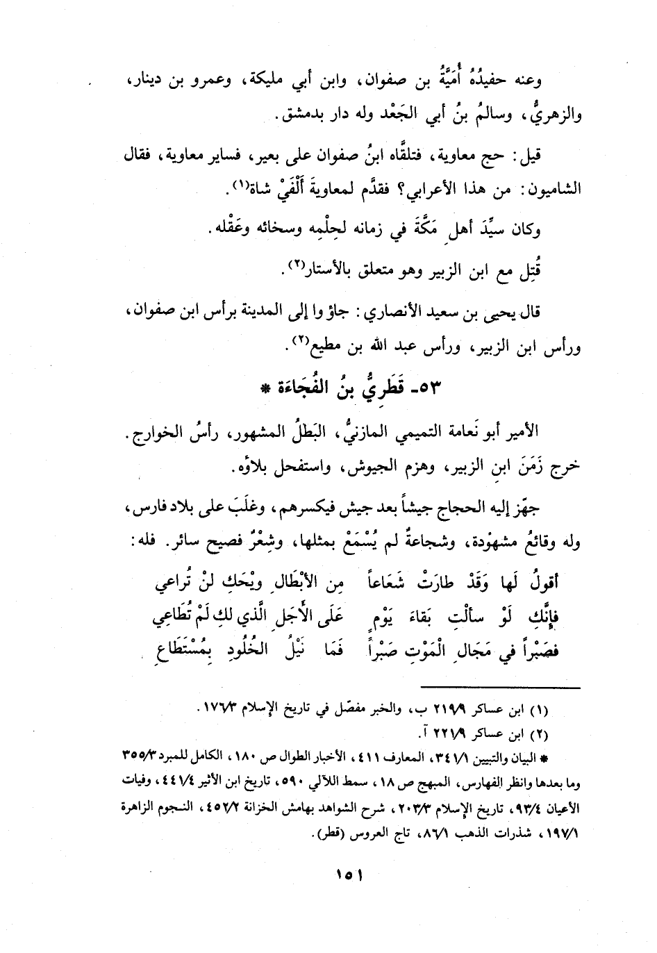 53 - قَطَرِيُّ بنُ الفُجَاءةِ أَبُو نَعَامَةَ التَّمِيْمِيُّ المَازِنِيُّ *